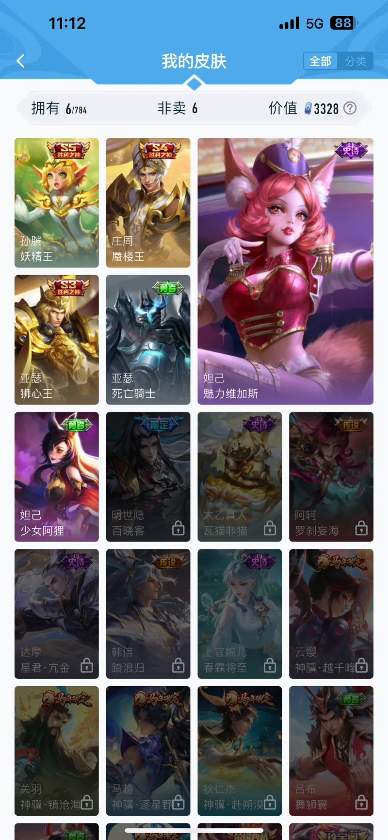 吃亏就吃亏在入坑太早了,那时候没有转区功能,我的老安卓号上有那三个赛季皮。