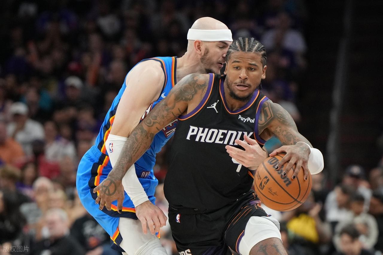 这一战,太阳不可谓不努力,狄龙21中11,3分9中4,罚球7中7,得到33分7篮板,拿下季后赛生涯单场得分新高;格林状态回暖,19中8,3分9中3,罚球8中7,得到26分5篮板6助攻;两大前火箭球星合砍61分,确实令火箭彻底后悔当初送他们来交易杜兰特!而布克今天状态低迷16中6,3分6中2,得到16分;反观雷霆,这场比赛打得确实有些丑陋,进攻球员辅助手开路,多特绊倒布克,太阳一起势就被亚历山大获得罚球机会,等等场面确实令人质疑,但是雷霆这边在缺少二当家的情况下,亚历山大一人扛起了全队,全场18中15,罚球12中11,得到42分4篮板8助攻,确实也无愧于MVP!而雷霆赢球的关键还是替补席实力太强,卡鲁索13分,命中3个3分,雷霆替补席得到36分,太阳替补席则得到12分。